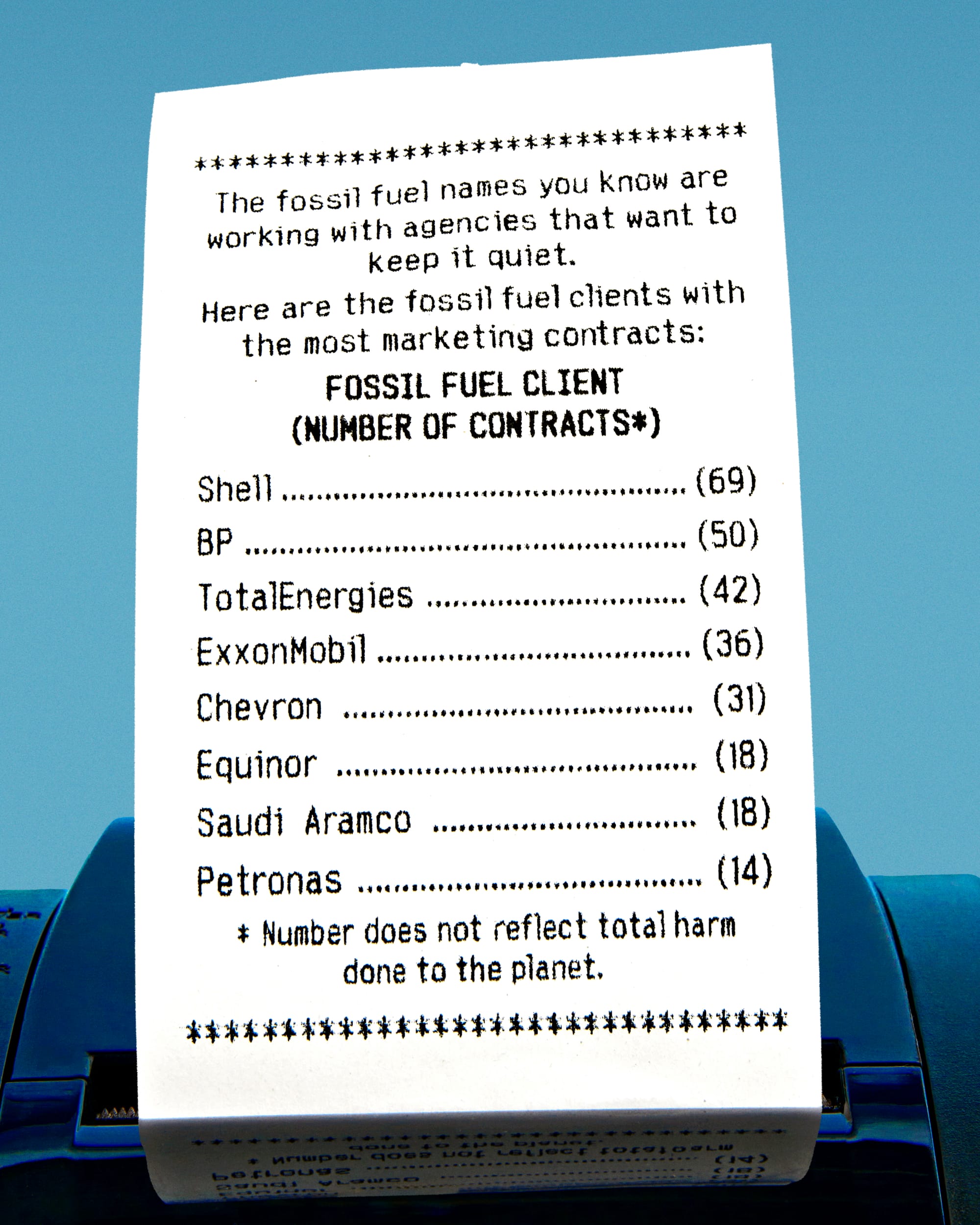 “This report is the result of seven months of deep investigative research into lobbying databases, creative portfolios, government records, news websites and social media,” Nayantara Dutta tells me. As head of research at Clean Creatives, Dutta has spent years tracking the advertising industry’s fossil fuel entanglements. She speaks with the measured exhaustion of someone who has counted every receipt.